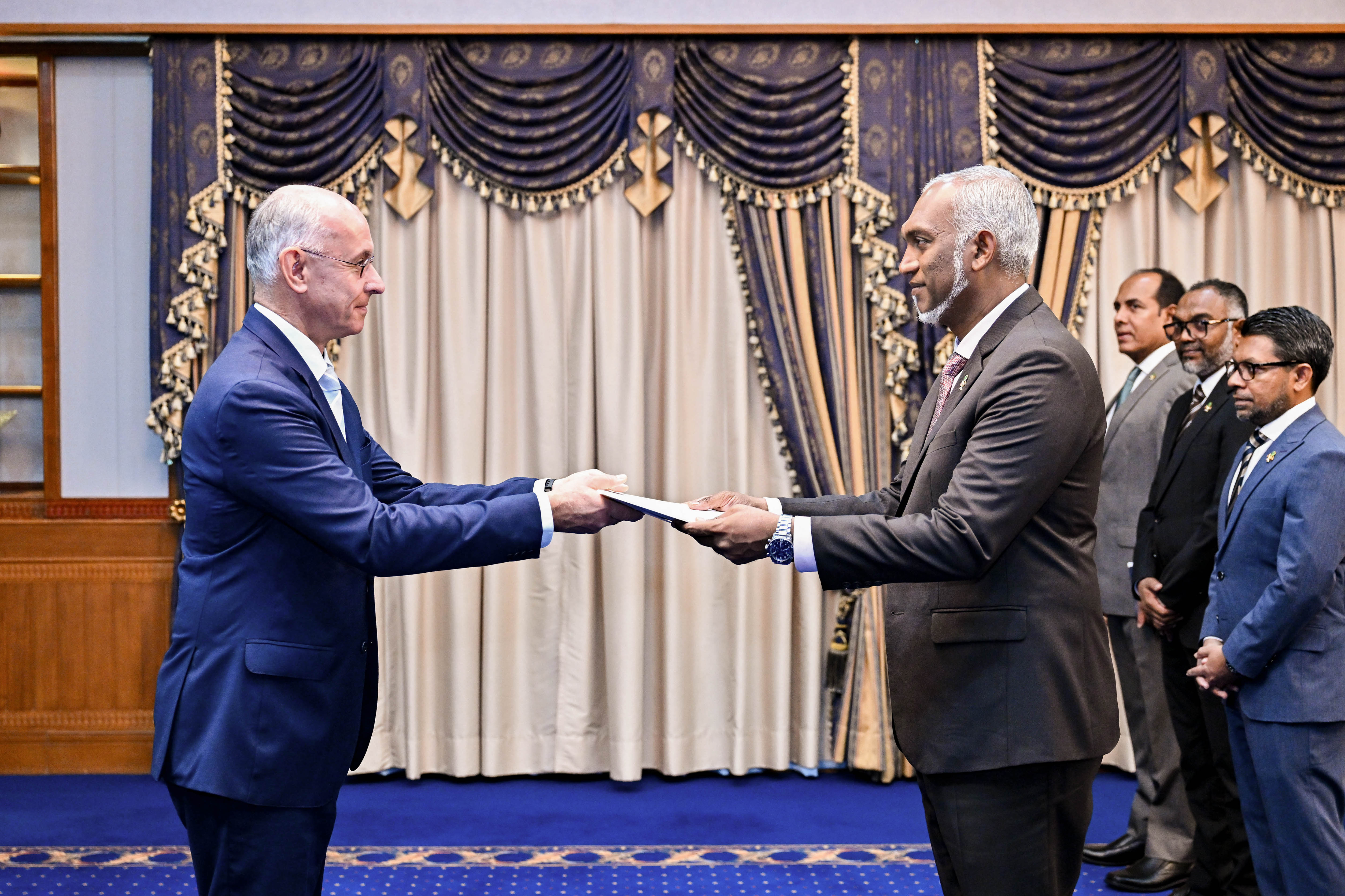 ޖަރުމަނުވިލާތުން ދިވެހިރާއްޖެއަށް ކަނޑައެޅުއްވި އައު ސަފީރު، ހިޒް އެކްސަލަންސީ ޑޮކްޓަރ ފީލިކްސް ނިއުމަން، އެމަނިކުފާނުގެ ސަފީރުކަމުގެ ފަތްކޮޅު ރައީސުލްޖުމްހޫރިއްޔާ ޑރ. މުޙައްމަދު މުޢިއްޒުއަށް މިއަދު އަރުވައިފިއެވެ. މި ރަސްމިއްޔާތު އޮތީ މިއަދު ހެނދުނު ރައީސުލްޖުމްހޫރިއްޔާގެ އޮފީހުގައެވެ.