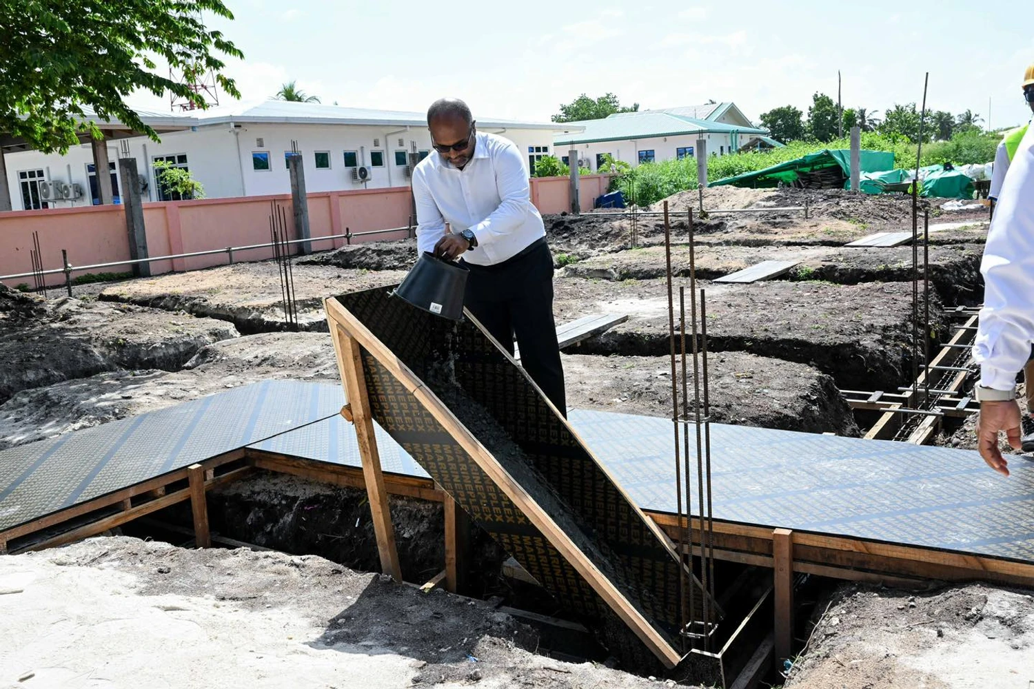 ނޫމަރާގައި އަލަށް އިމާރާތްކުރާ ފުލުހުންގެ މަރުކަޒުގެ އަމަލީ މަސައްކަތް ފެށުމަށް އެރަށުގައި ބޭއްވި ރަސްމިއްޔާތުގައި ރައީސުލްޖުމްހޫރިއްޔާ ޑރ. މުޙައްމަދު މުޢިއްޒު ބައިވެރިވެވަޑައިގެންނެވިއެވެ.