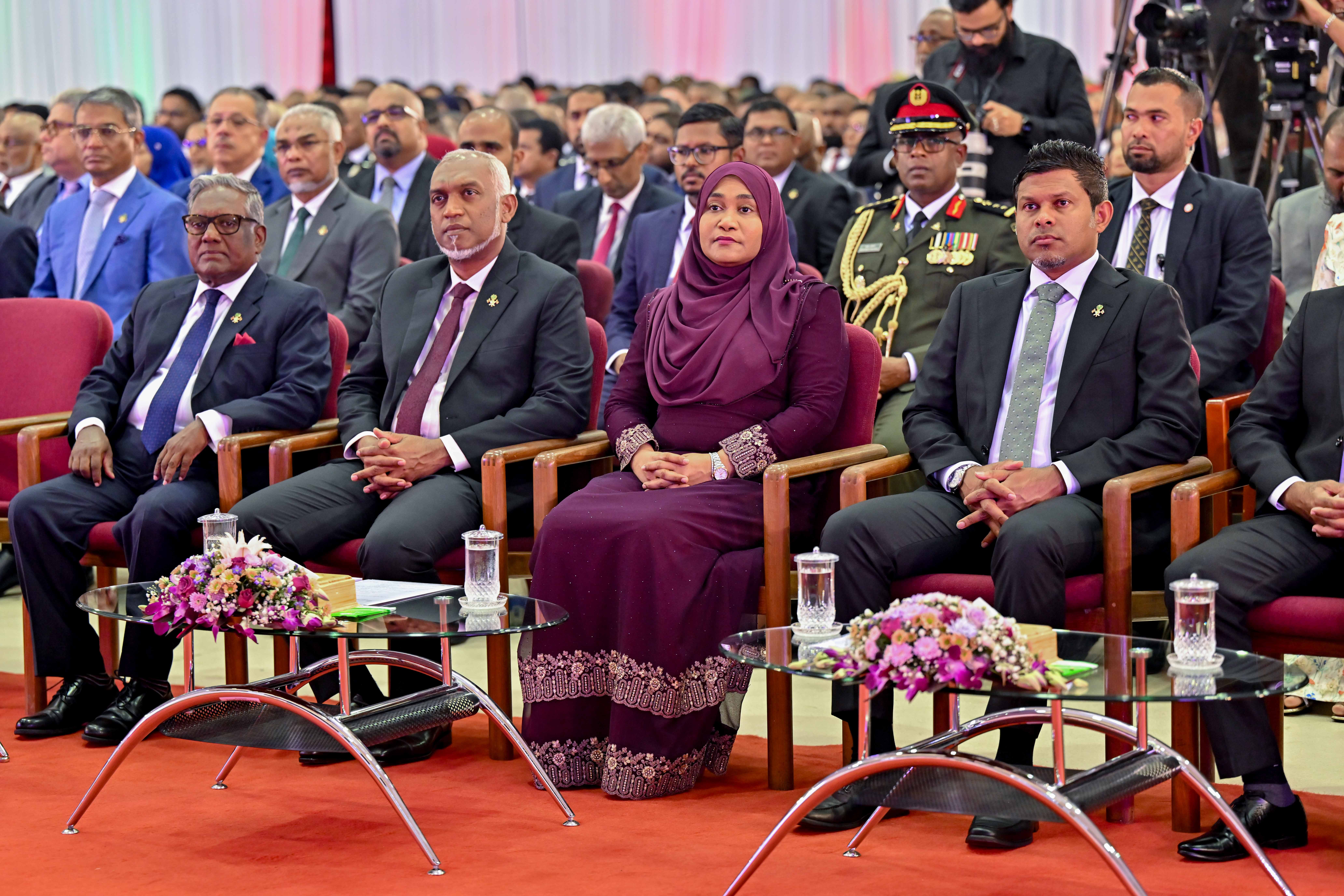 ރައީސުލްޖުމްހޫރިއްޔާ ޑރ. މުޙައްމަދު މުޢިއްޒު އާއި އެމަނިކުފާނުގެ އަނބިކަނބަލުން ސާޖިދާ މުޙައްމަދު، ޖުމްހޫރީ ދުވަހުގެ ރަސްމީ ޖަލްސާގައި ބައިވެރިވެވަޑައިގަންނަވައިފިއެވެ.