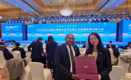 2025 ވަނަ އަހަރުގެ މެރިޓައިމް ސިލްކް ރޯޑް އަރބަން ކޯޕަރޭޝަން އެންޑް ޑިވެލޮޕްމަންޓް ކޮންފަރެންސް އަދި ވެންޒޯގައި ބޭއްވުނު އިންޓަރނޭޝަނަލް ޓްރެވަލް އޭޖެންޓްސް ކޮންފަރެންސްގެ ހަވާސާގައި، ރާއްޖޭގެ ފަތުރުވެރިކަމާއި ތިމާވެއްޓާ ބެހޭ ވުޒާރާއިގެ ސްޓޭޓް މިނިސްޓަރ ޑރ. ޢަބްދުﷲ ނިޔާޒް، އިޓަލީގެ އެކުއިލޭއާގެ މޭޔަރު އެމަނުއެލް ޒޮރީނޯއާ ބައްދަލުކުރައްވައިފިއެވެ.